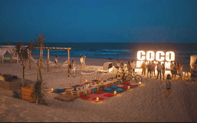 Đến với Coco Beach trong hành trình du lịch Phan Thiết du khách sẽ được trải nghiệm tự tay cắm và dựng cho mình những căn lều nhỏ, được thưởng thức những món hải sản tươi ngon vừa được kéo lưới, tham gia những trò chơi vận động ngoài trời, đêm đến nhảy múa vui chơi hết mình,…