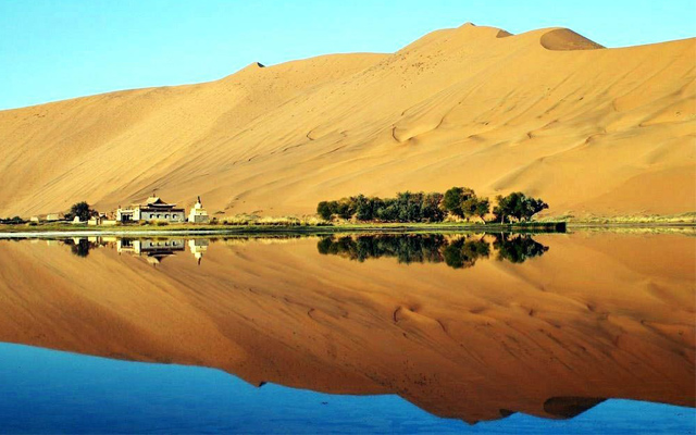 Du khách sẽ phải bất ngờ bởi vì Gobi không chỉ có cho mình những cồn cát rộng lớn với những bãi cát siêu mịn mà khi đã đến sa mạc Gobi, du khách tour du lịch Mông Cổ còn được ngắm nhìn những ốc đảo xanh tươi tuyệt đẹp với hồ nước hình lưỡi liềm được hình thành từ chính mạch nước ngầm tại nơi đây vô cùng độc đáo. Có lẽ lần đầu khi đặt chân đến đây, chắc hẳn hầu hết các du khách đều phải ngỡ ngàng với khung cảnh thiên nhiên như bức tranh phong cảnh của một sa mạc rộng lớn khắc nghiệt này.